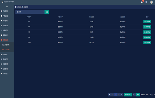 可以查看风机、整个风场、系统的报警记录: